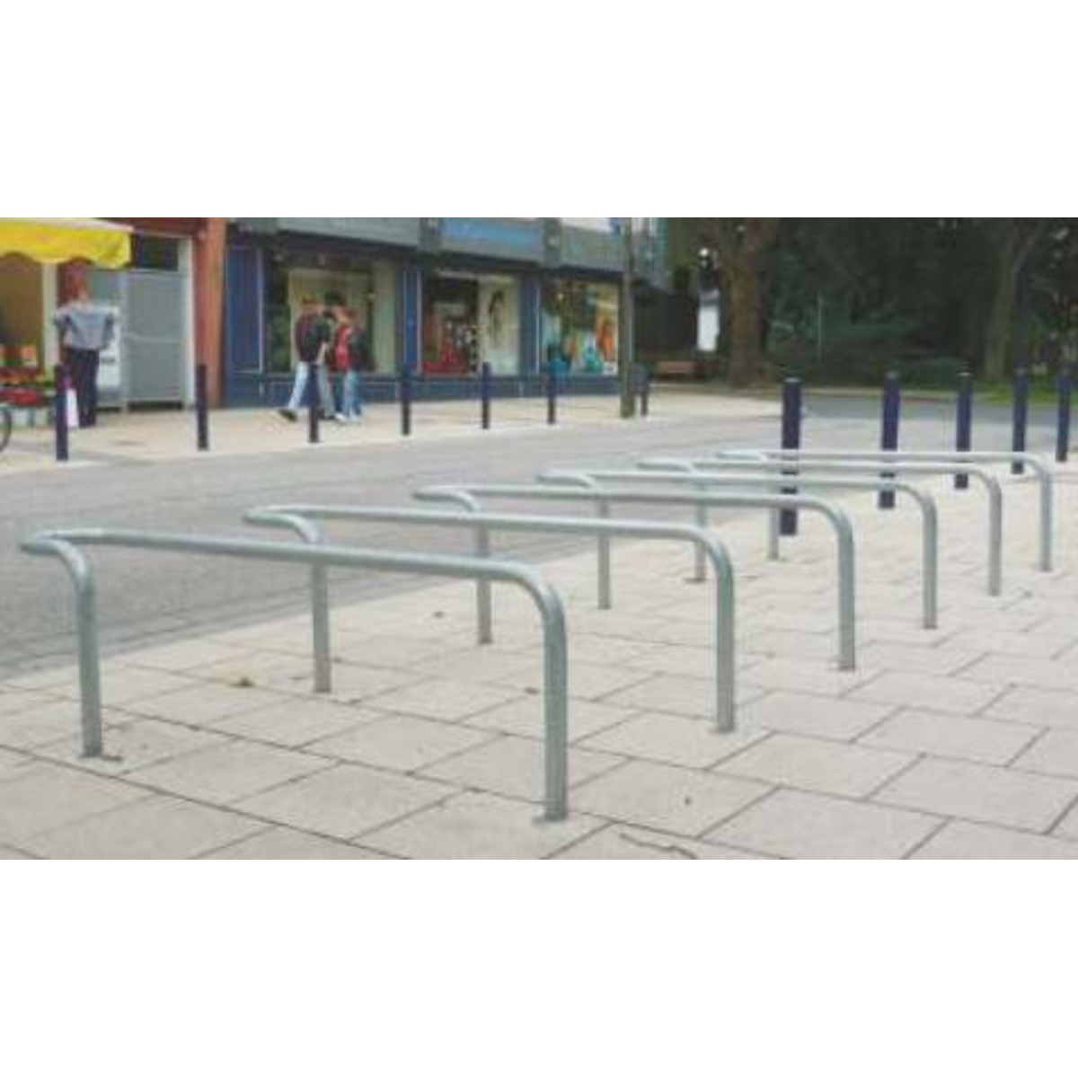 Fahrradständer mit zwei Standbeinen, zum Anlehnen und Einstellen von Rädern und Motorrädern, aus feuerverzinktem Rohr Ø 48 mm.